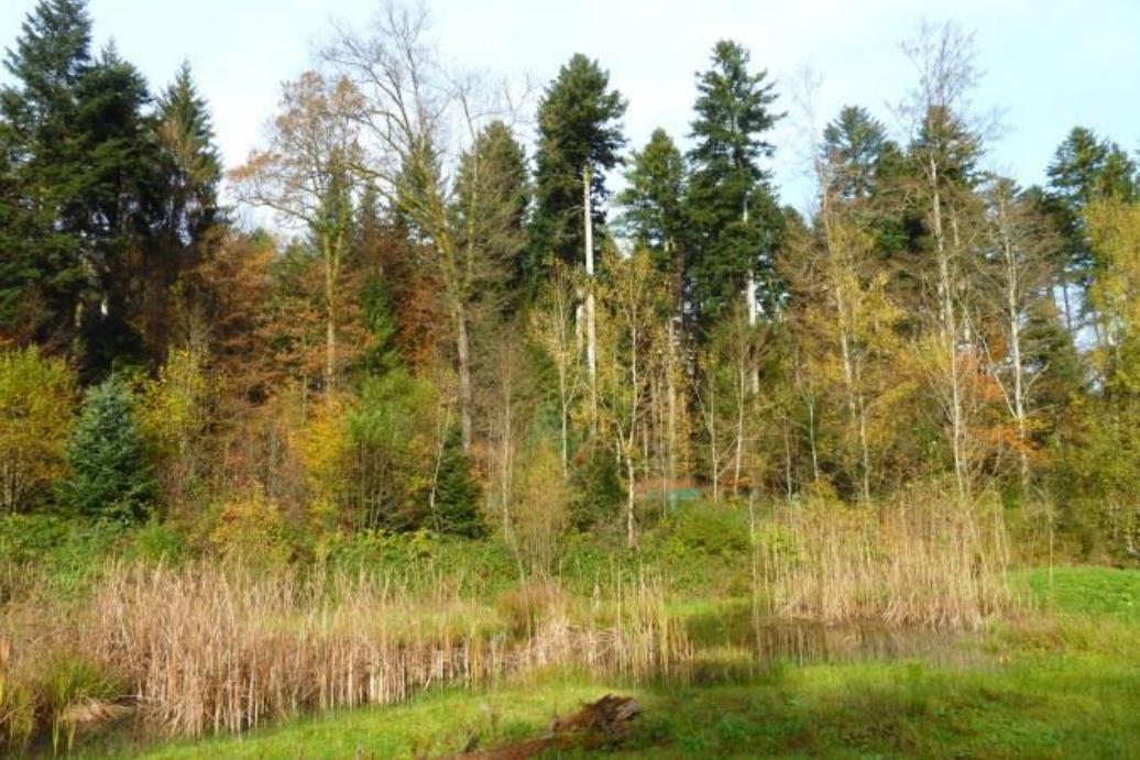 Neuere Forschungen haben ergeben, dass sich Zecken vermehrt im Waldrandbereich aufhalten und dadurch insbesondere dort das Risiko von einer Zecke gestochen zu werden besonders hoch ist. Deshalb sind wir interessiert daran, ob Zeckenstiche von App-Nutzern auch vermehrt im Bereich des Waldrandes gemeldet wurden. Im Gegensatz zu den vorherigen Übungen, welche die Erfassungsgenauigkeit von Punktdaten untersuchte, liegt der Fokus nun auf der Unschärfe des Waldrands. Wie wird ein Waldrand überhaupt definiert? Handelt es sich um eine scharf abgegrenzte Linie? Falls ja, wo liegt diese Linie exakt? Sind die Baumkronen, die Krautschicht oder die einzelnen Stämme ausschlaggebend? Oder handelt es sich beim Waldrand um einen Bereich mit einem bestimmten Abstand von einer zu definierenden Waldrandlinie? Wie würdest du in der untenstehenden Abbildung den Waldrand festlegen und wie würdest du dies GIS-technisch umsetzen?