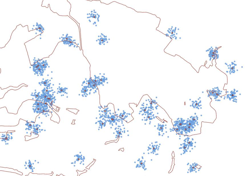 Dabei sollen die Unschärfe-Werte (1 / 0.7 / 0.4 / 0) vorerst nur den Original-Stichstandortdaten zugeteilt werden (Input point feature = Tick_Original). Erstelle eine grafische Visualisierung (bsp. Histogramm).