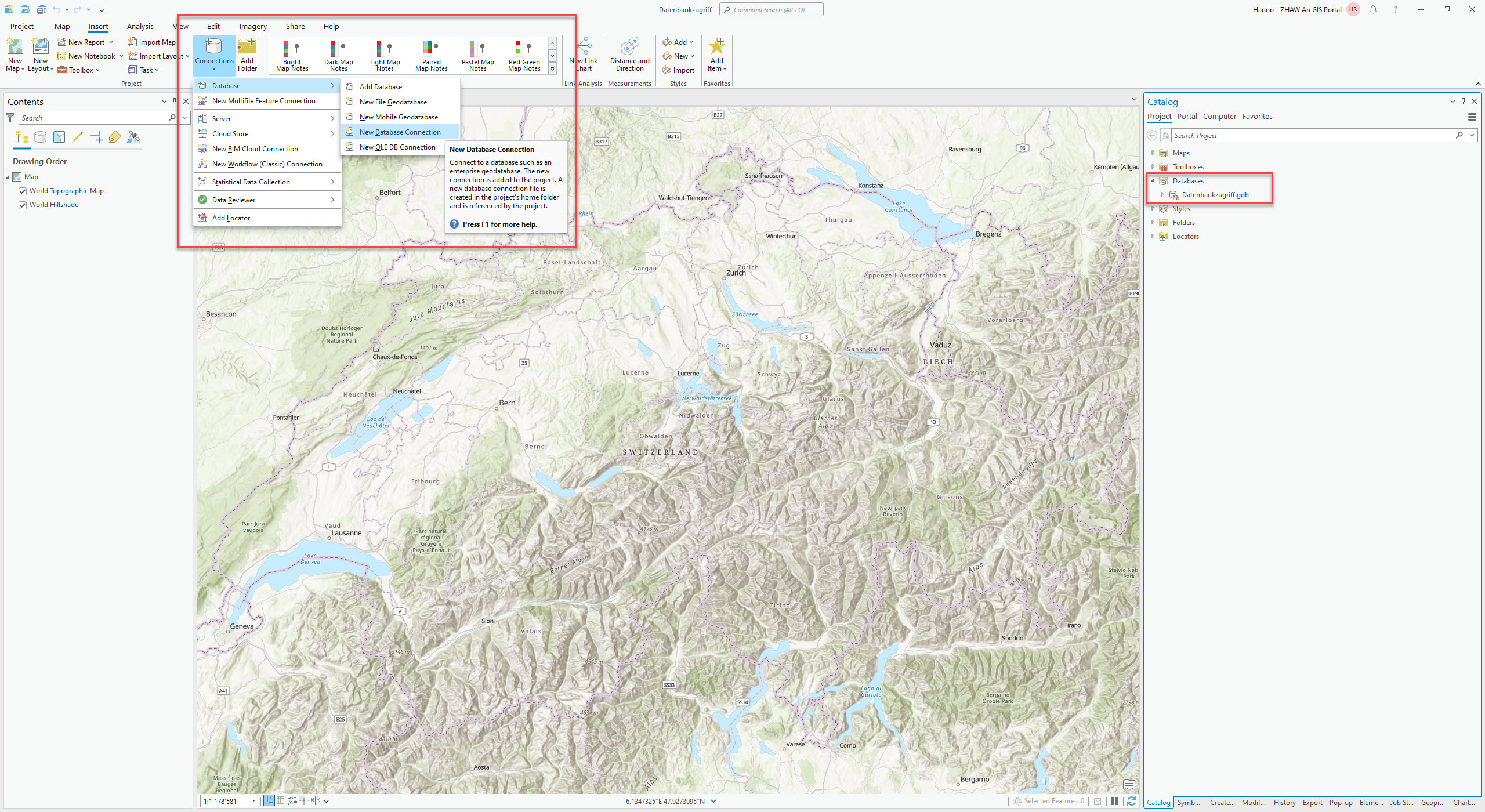- Starten Sie ArcGIS Pro und laden das Projekt “Datenbankzugriff”.