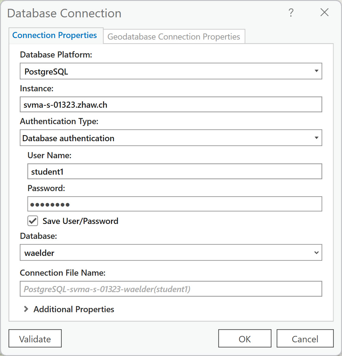 Übung 3: Verbindung zur PostgreSQL/PostGIS Datenbank mit ArcGIS Pro herstellen