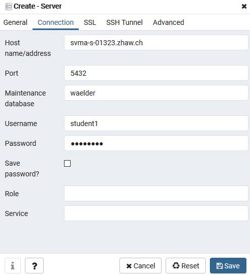 Übung 2: Datenbankverbindung zum Server in pgAdmin herstellen