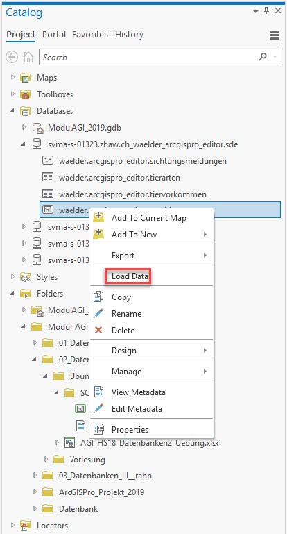 - Bleiben Sie in der Datenbank “waelder” im schema “arcgispro_editor”.