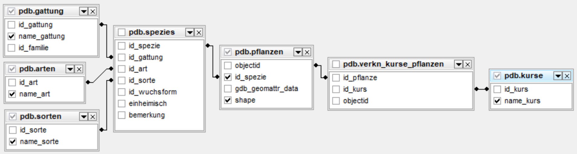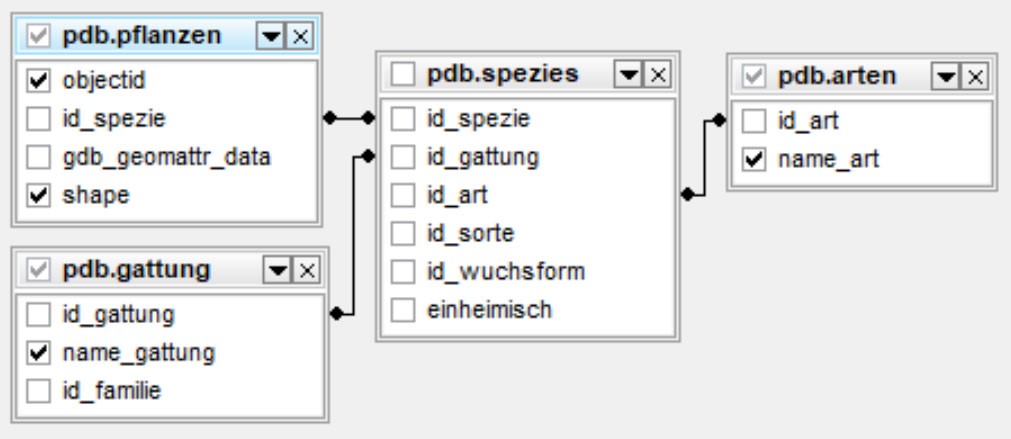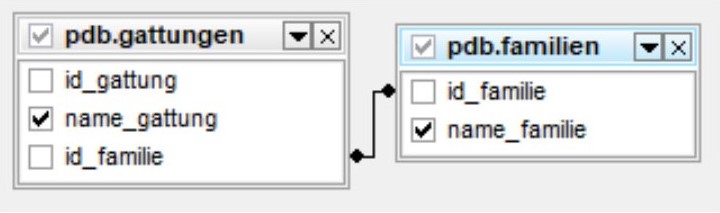 - Wählen Sie die beteiligten Tabellen familien und gattungen (über die Datenbankverbindung)