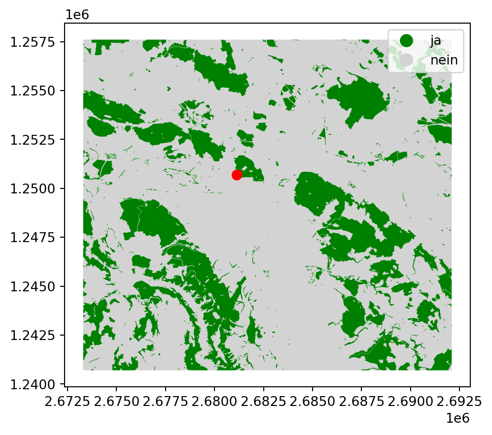 zeckenstiche.explore(column = "accuracy")Wald nach "Wald_text" eingefärbt (beachte, dass ich my_cmap weiter oben erstellt habe!):