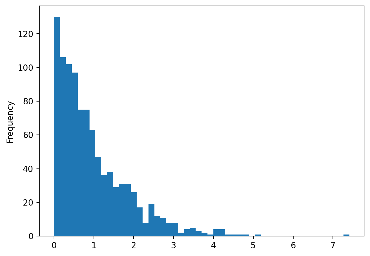 random_gamma = [random.gammavariate(1, 1) for x in range(1000)]