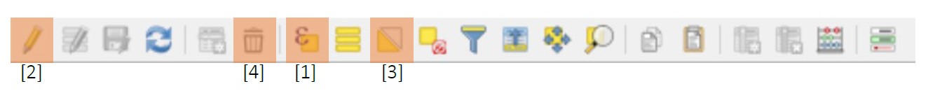 - Eine Editiersession starten [2], die Selektion invertieren [3] und die selektierten Daten löschen [4]. ODER