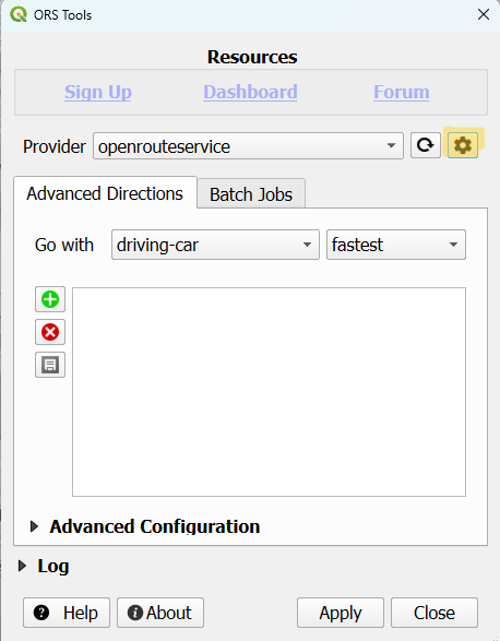 Führen Sie das Tool nach der Installation via Web → ORS Tools → ORS Tools aus. Gehen Sie zu Settings siehe Abbildung 54.2).