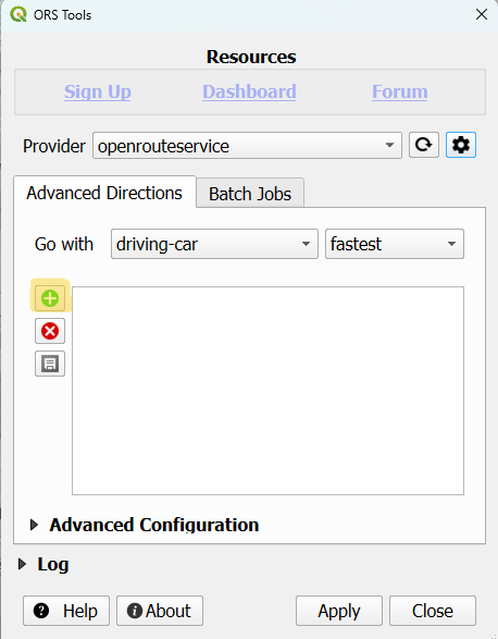 Mit einem Klick auf dieses Symbol erscheint das ORS Routing wieder.